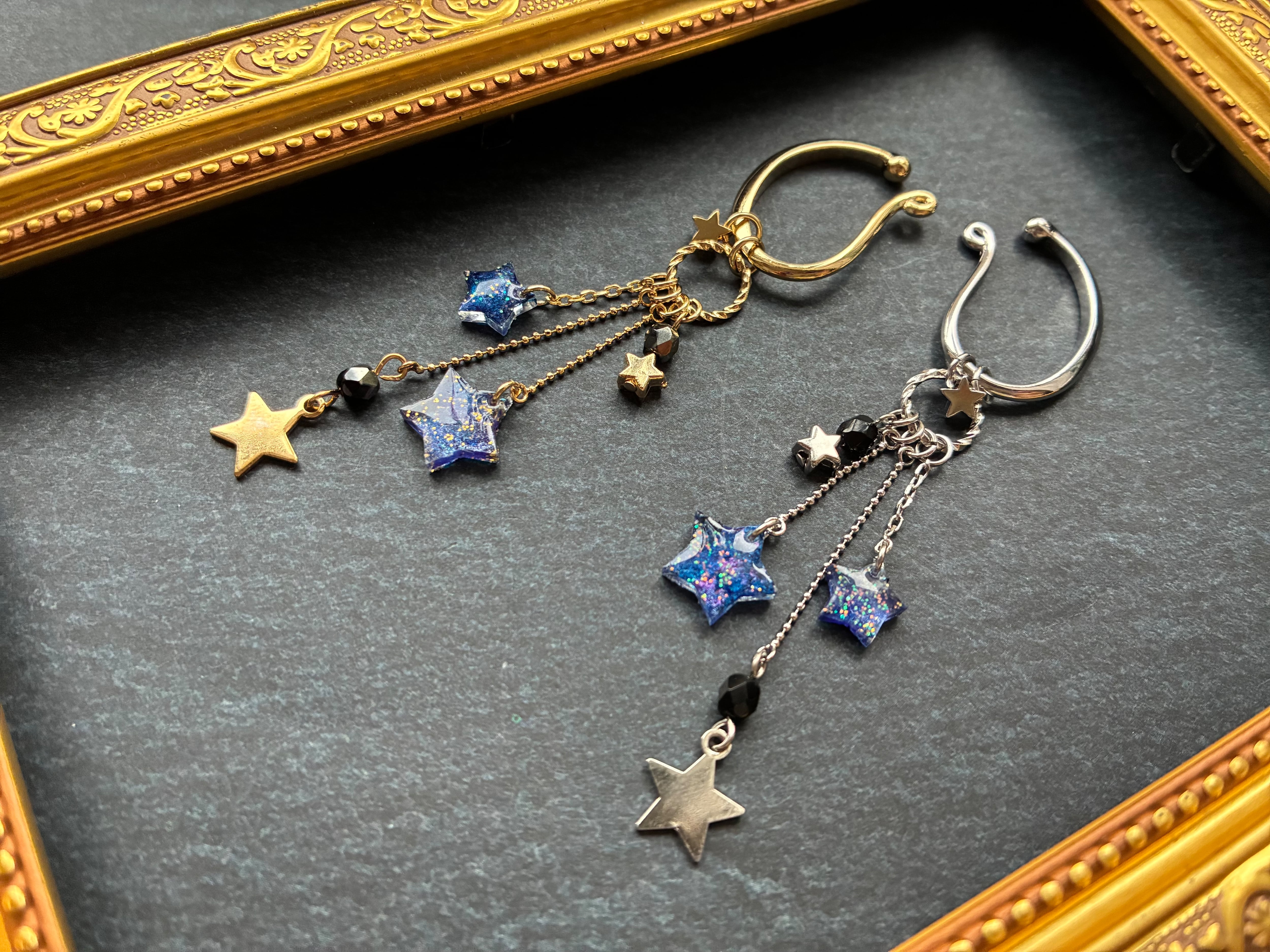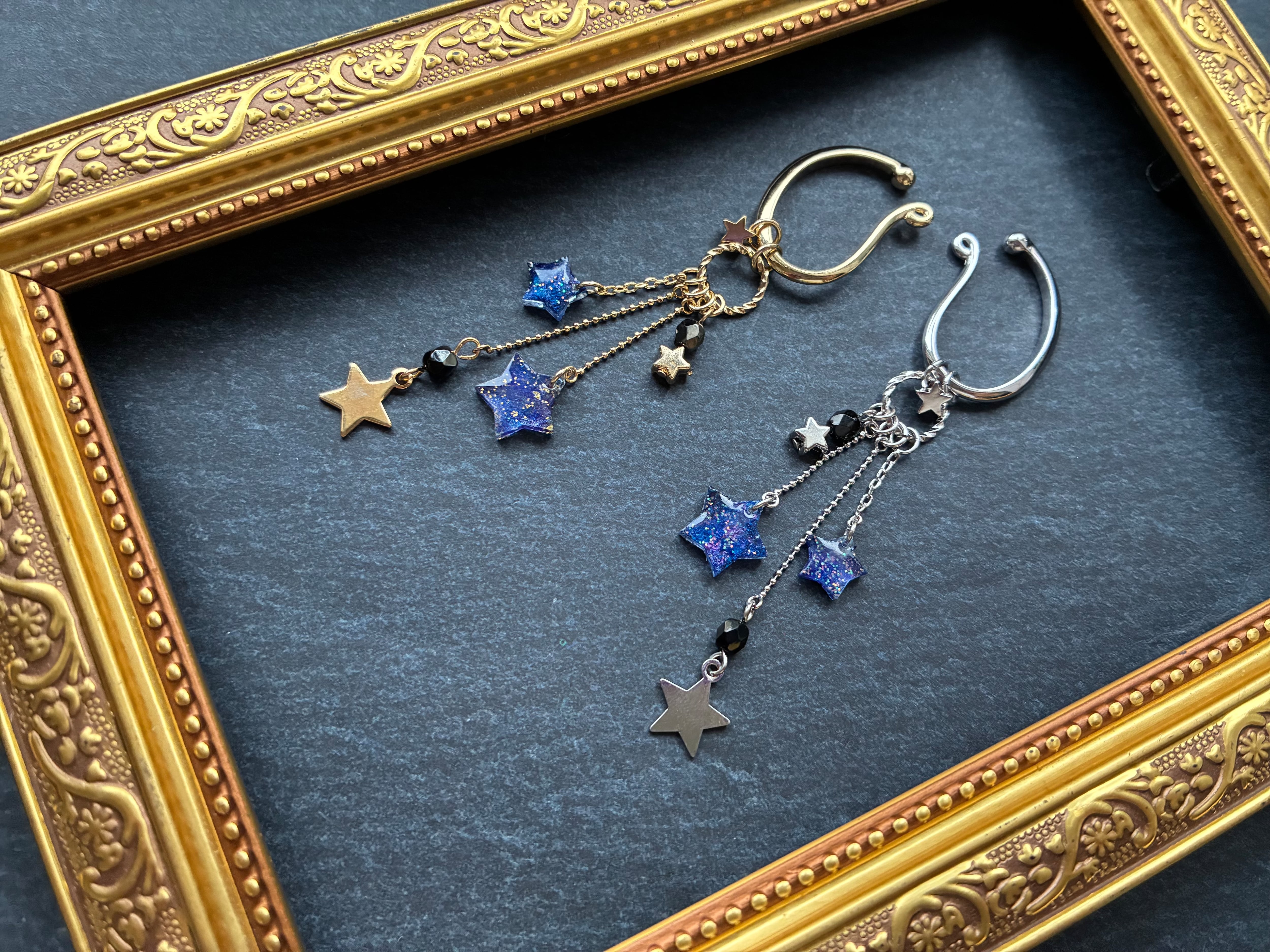 流星群の夜の流れを汲む星降る夜の物語を表現したイヤーフックです。