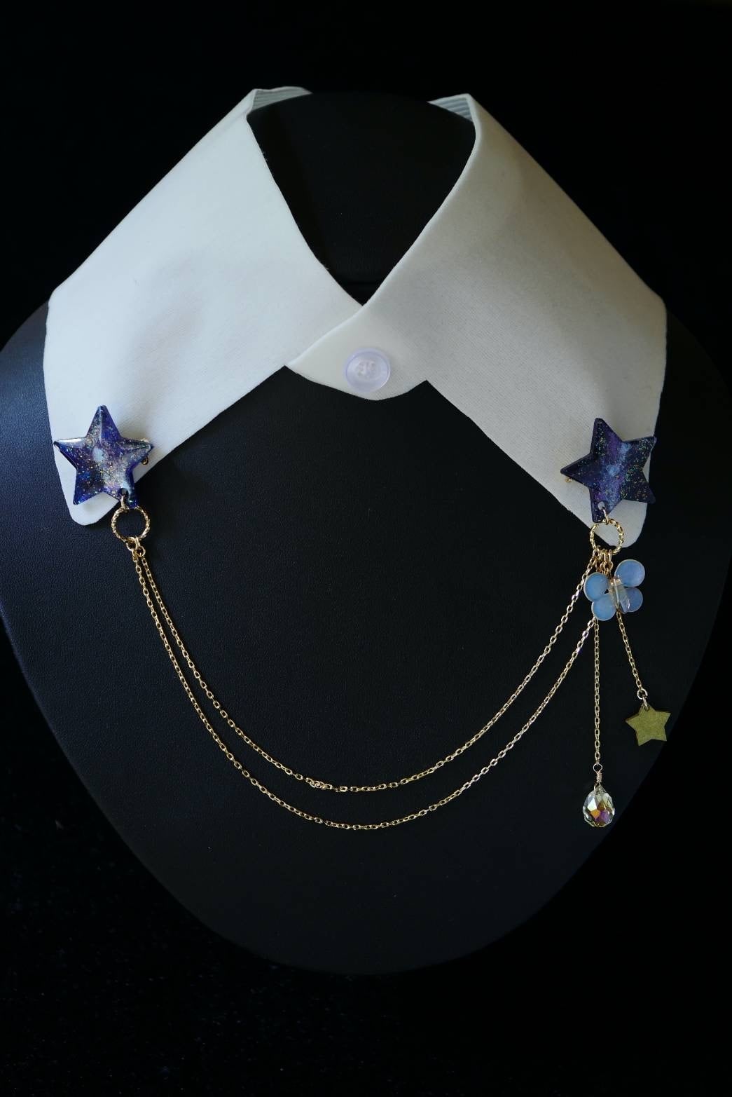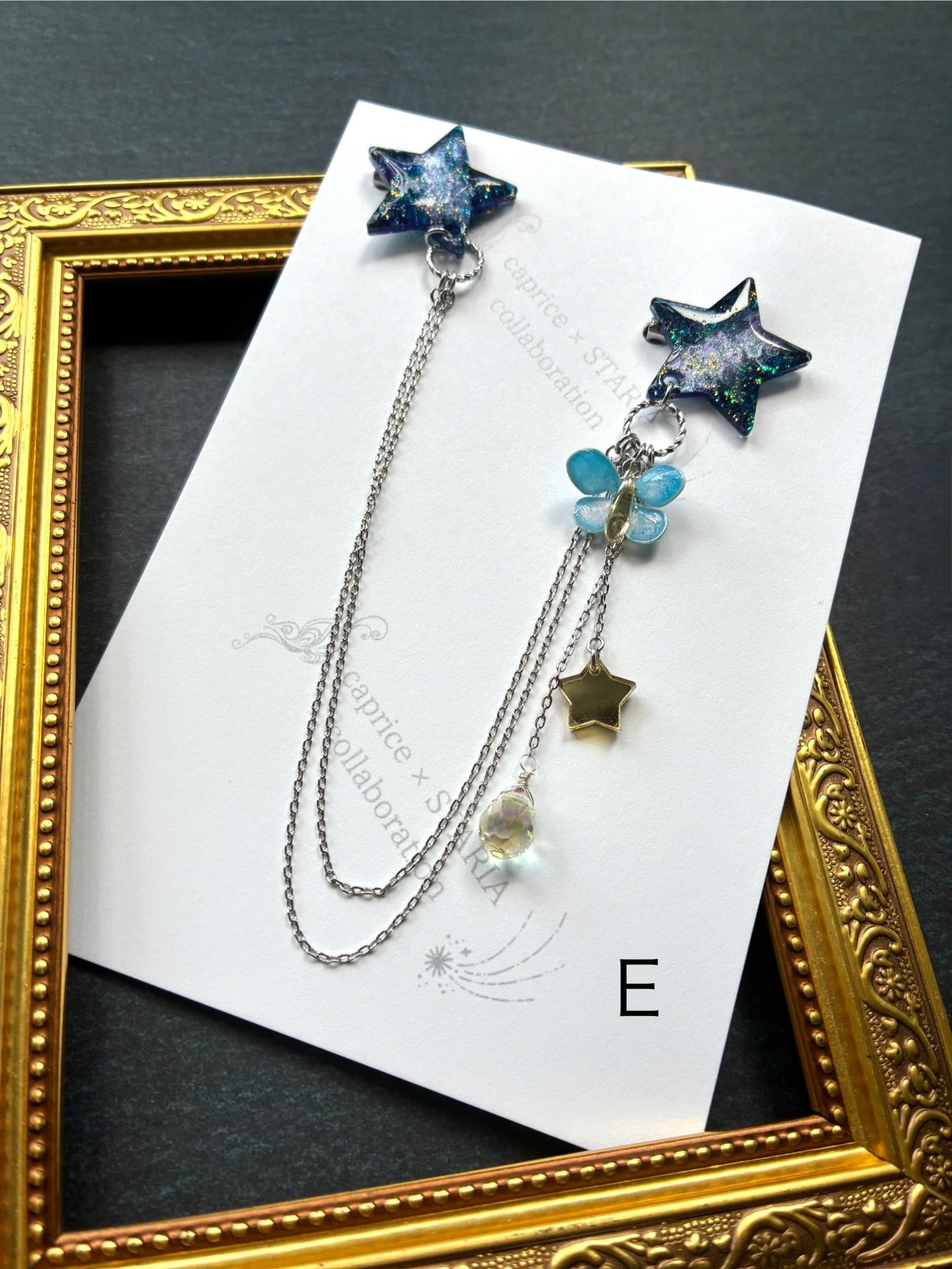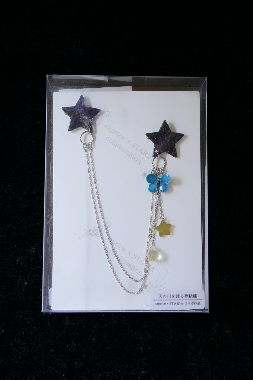 天の川と夜空を舞う蝶をイメージしたダブルブローチです。