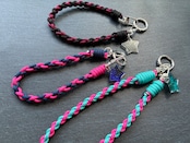 アウトドアで使用される耐久性のあるパラコード(アウトドアコード)を編んだショートストラップです。