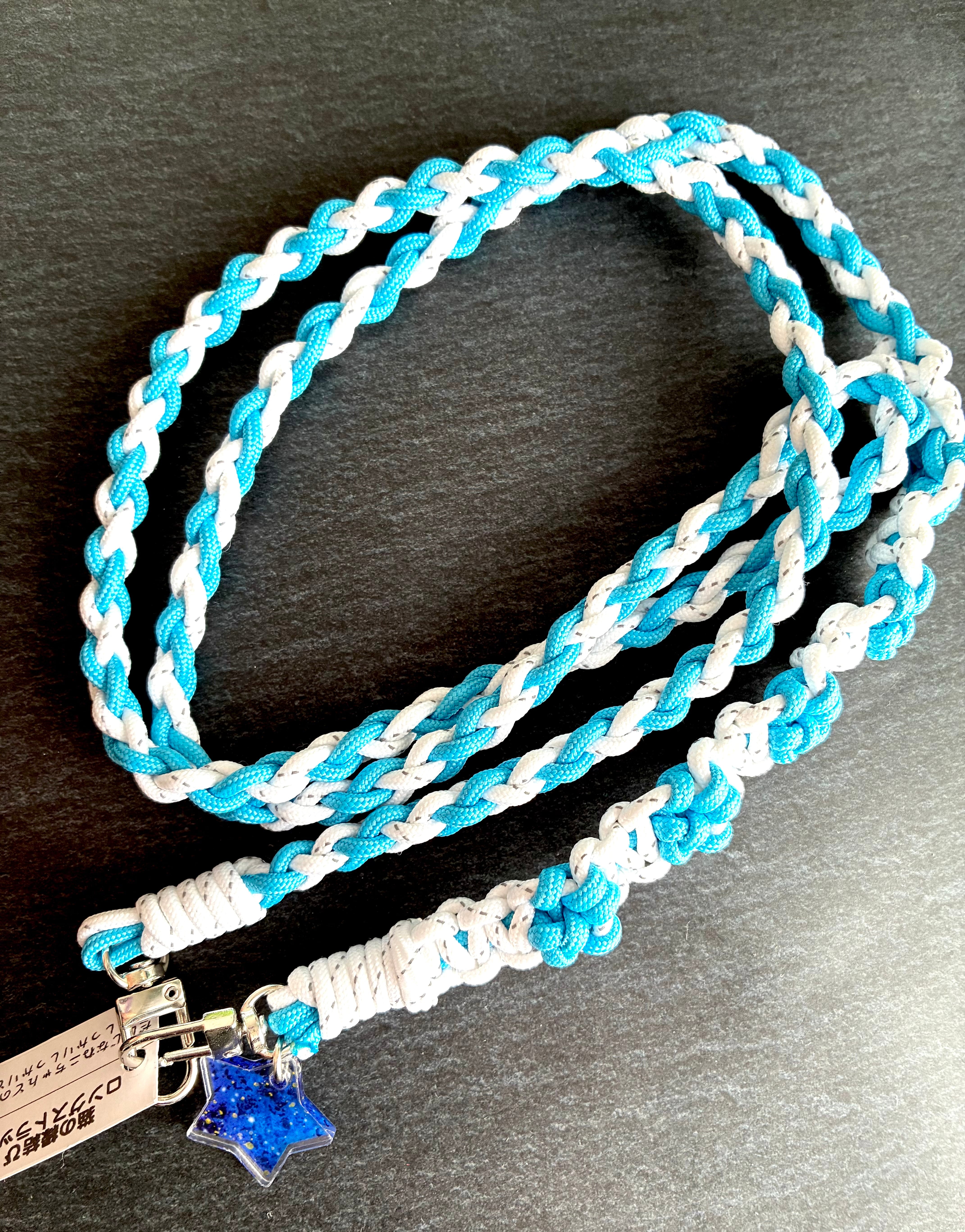 アウトドアで使用される耐久性のあるパラコード(アウトドアコード)を編んだロングストラップです。