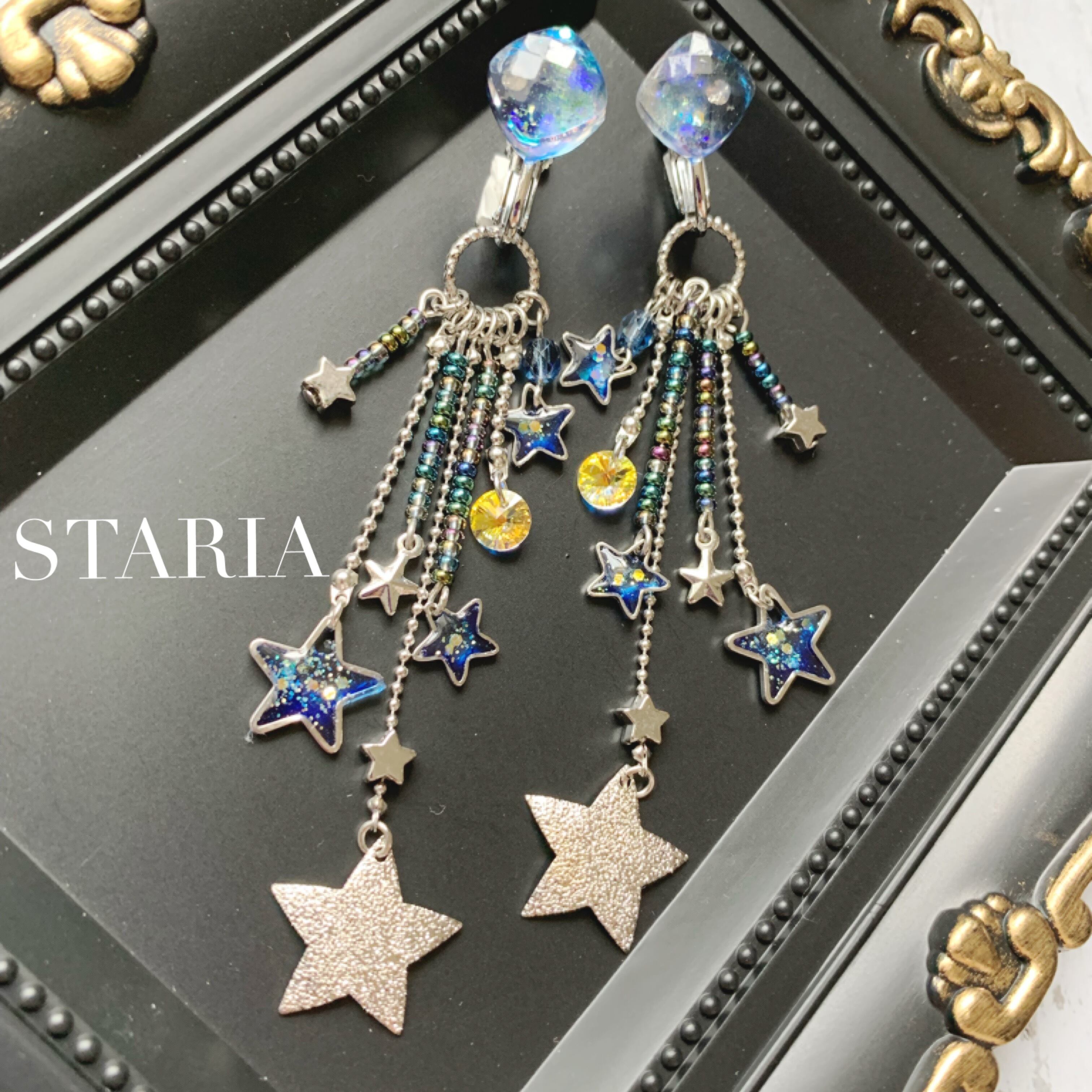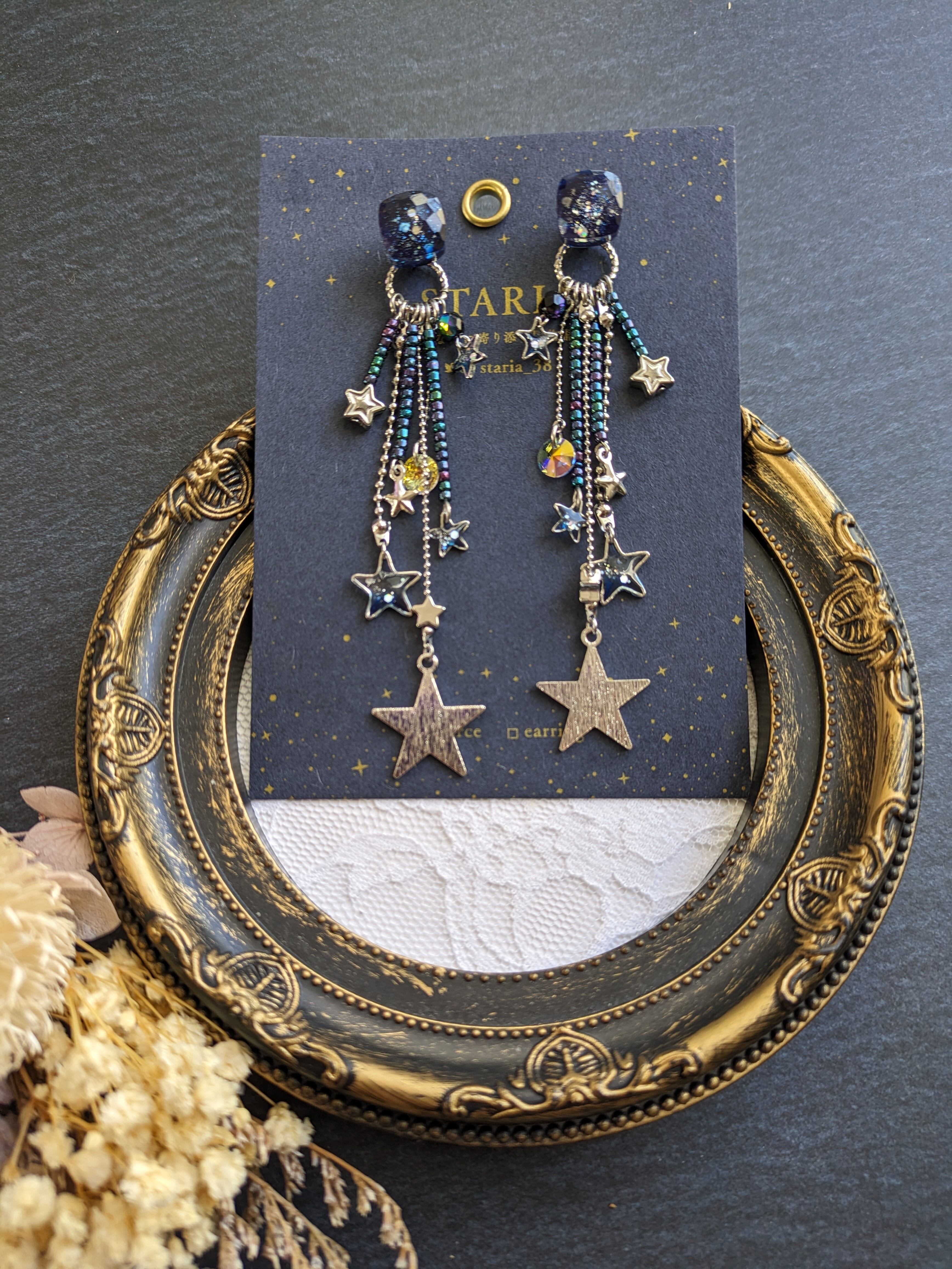 在庫限り終了【2way】流星群の夜(ロジウムカラー)【イヤリング・ピアス】