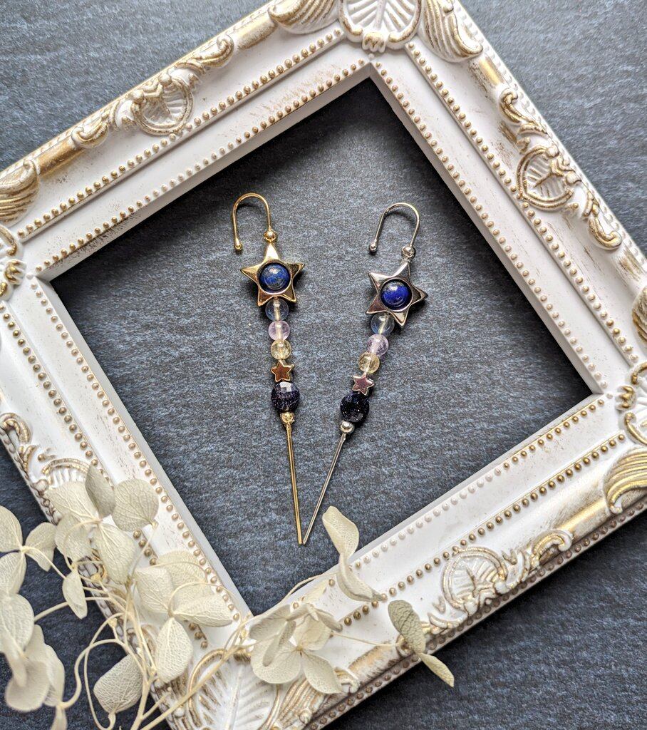 オプションより金具の色、下部分の星パーツの形をお選びください。