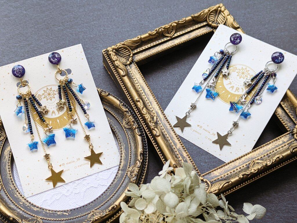 流星群の夜をイメージしたイヤリングです。